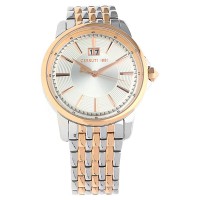 ●品番:CRA072STR04MRT ●ブランド名:CERRUTI 1881(チェルッティ1881) ●ムーブメント:電池式クォーツ ●表示タイプ:アナログ ●風防素材:ミネラルガラス ●盤面表示:秒, 分, 時, 日 ●文字盤形状:丸型 ●文字盤カラー:ゴールド(金) ●ケース素材:ステンレス ●ケースカラー:シルバー(銀) ●ケースサイズ:44mm ●ケース厚:11mm ●裏蓋:圧入式裏蓋 ●竜頭:非ねじ込み式 ●ベルト素材:ステンレス ●ベルトカラー:シルバーローズゴールド ●ベルト取付幅:22mm ●バックル:Dバックル(両側プッシュ式・両開きタイプ) ●重量:130g ●耐水圧:50m(日常生活用防水) ●機能:デイト ■ 日付:12時位置。竜頭一段引き出しで右回しで設定。 ●付属品:メーカー保証 24ヶ月/取扱説明書(日本語表記なし)/純正ケース ●スタイル:シンプル/ファッション ●対象:メンズ ●備考:なし